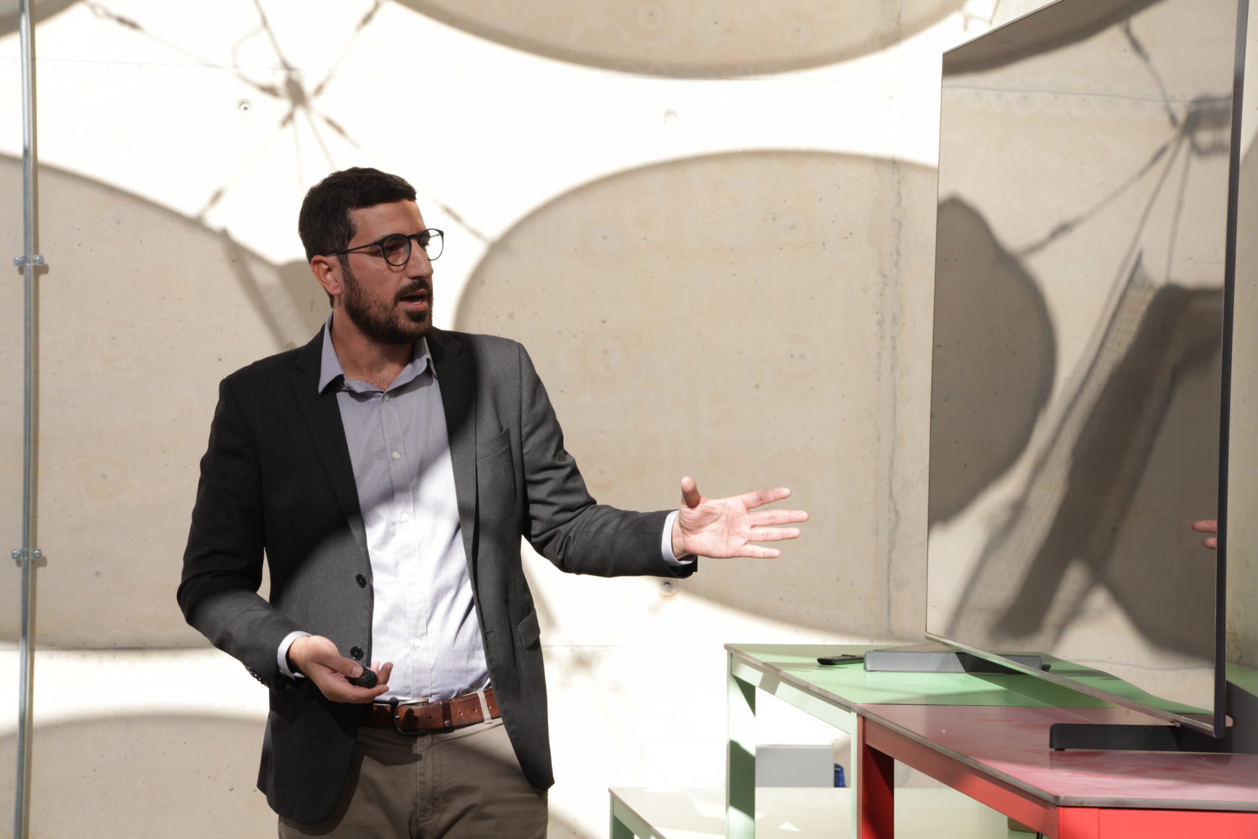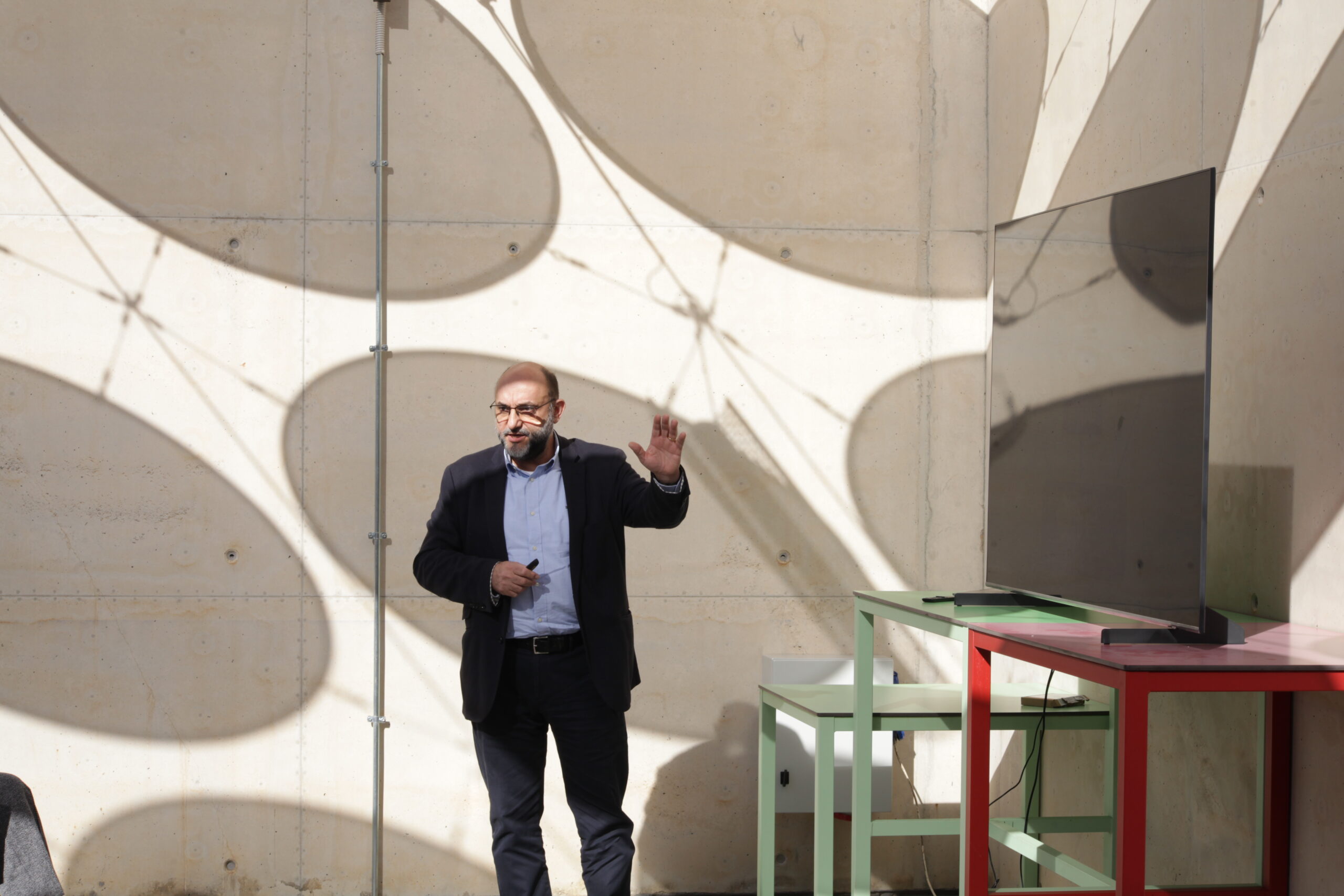 Abrió el turno Toni Garí, gerente de Poraxa, quien compartió el desafío técnico de mejorar las propiedades aislantes del poliestireno expandido mediante la incorporación de nanopartículas y explicó la necesidad de trabajar con la UIB en la elaboración de detalles constructivos para un nuevo e innovador aislamiento que están a punto de lanzar.